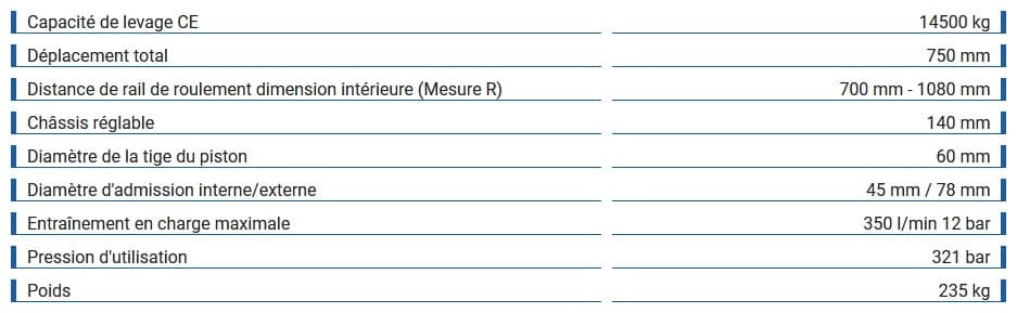 Le vérin est muni d’un châssis P bien embouti pour les travaux avec traverses d’essieu (châssis S également possible)