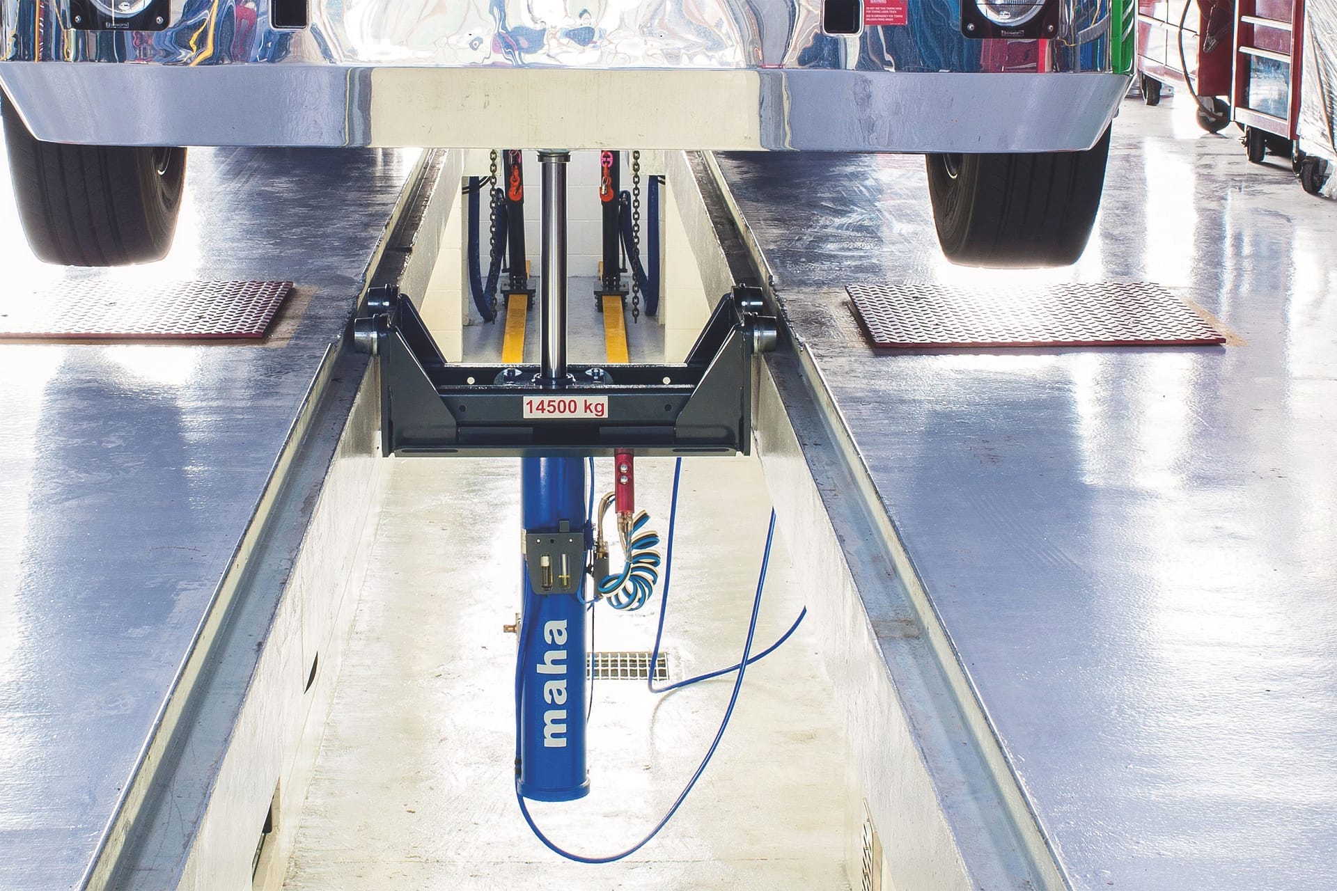 vérin de fosse guidé sur rail au bord de fosse supérieur pour un processus simplifié dans la fosse de réparation