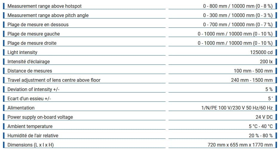 Appareil digital pour une vérification et un réglage rapides et objectifs des phares du véhicule tenant compte des limites légales et des directives OEM