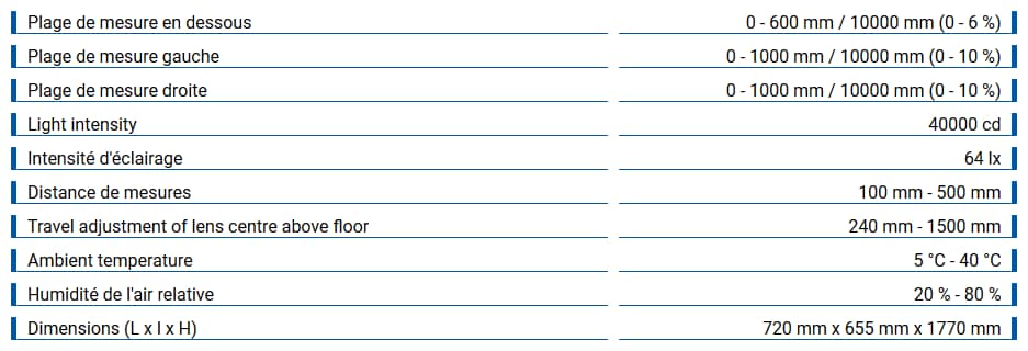Conception robuste, également adapté à l’utilisation en combinaison avec une piste d’essai