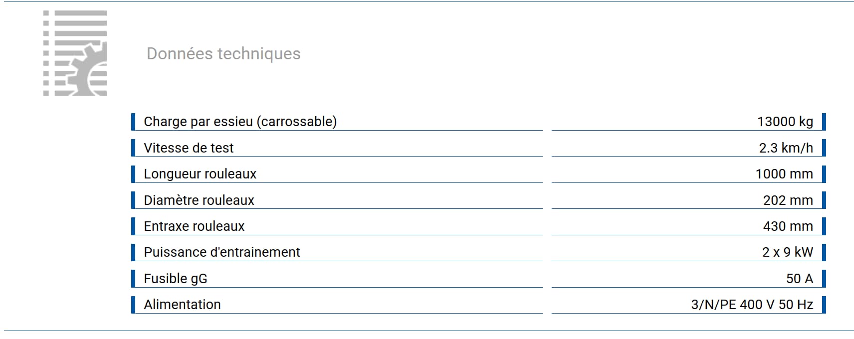 des rouleaux bien équilibrés et à billes rigides garantissent une très grande précision, un confort de conduite absolu et une longue durée de vie du banc d’essai dans son ensemble
