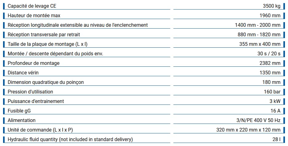 SQUARE | Pont élévateur à deux vérins avec plateau de réception 3500 kg
