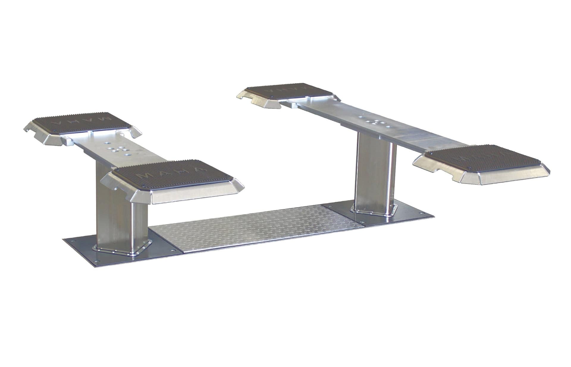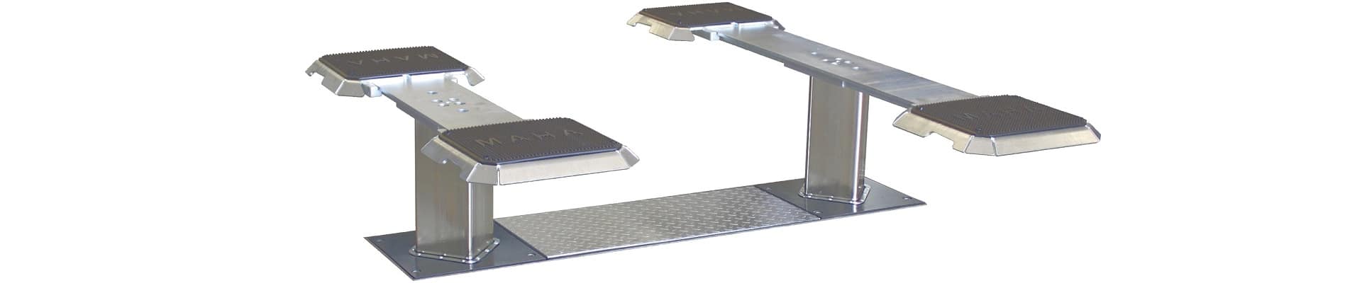 Entrée et sortie facilitée et très délicate pour les pneus grâce à des extensions chanfreinées à très faible hauteur, munies de plateaux de réception en caoutchouc (hauteur d’env. 60 mm seulement)