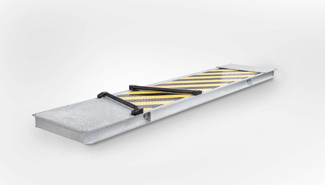 Pour maîtriser les situations d’entrée compliquées ou simplifier la tâche des conducteurs manquant d’entraînement, cette aide de positionnement dans l’installation à chaînes constitue un accessoire indispensable. La dalle à guidage à rouleaux oriente sans problème les roues dans la voie.