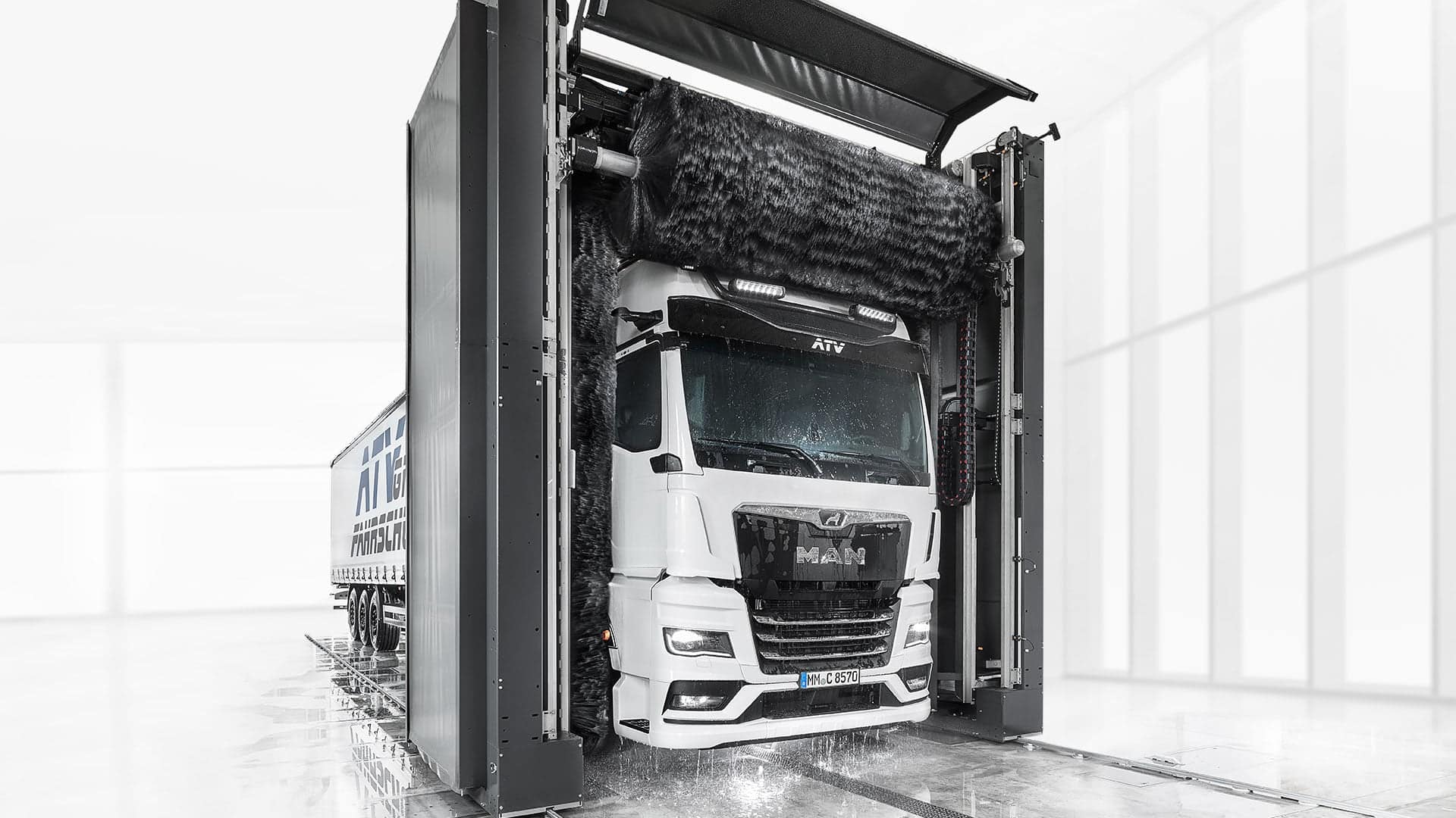 L’installation de lavage professionnelle pour tous les types de véhicules utilitaires.