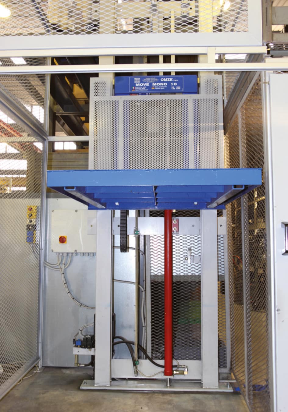 La catégorie des MONO est celle des monte-charges. O.ME.R. se caractérise pour une fabrication de monte-charges de type industriel, c’est à dire avec une portée de 750 kg jusqu’à une capacité double de 1500 kg. La possibilité d’adapter la dimension de la plateforme aux exigences du client fait du MONO un produit très flexible. De plus, la structure très robuste permet le soulèvement de n’importe quel