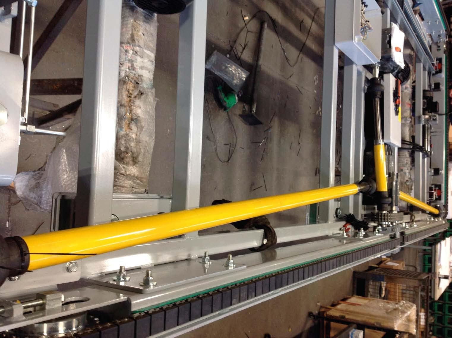 des connexions électriques est positionné juste au-dessus de la structure de la cellule de transfert pour faciliter l’installation et la maintenance. Le détail du côté court montre également plus clairement la structure du mouvement à chaînes.