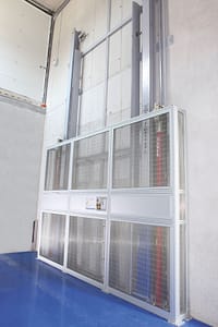 est dotée d’une protection d’une hauteur de 2,50 mètres non amovible autrement qu’avec les outils particuliers des techniciens de maintenance. Cette protection empêche tout contact avec les composants de mouvement de la plateforme (norme 2006/42/EC).
