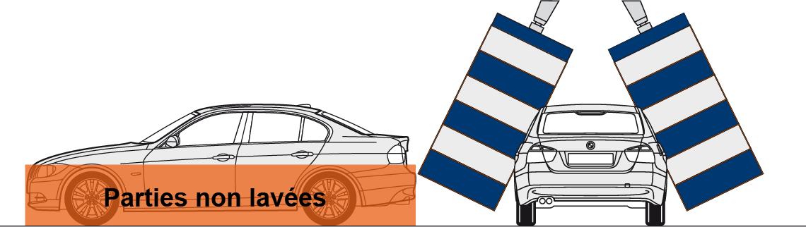 OPTIFLEX est la technologie standard du lavage latéral à brosses d’un portique. Les brosses latérales droites résistent à un nombre élevé de lavages et conviennent tout particulièrement aux stations à prix de lavage bas. L’appui des brosses précis et régulier évite d’endommager les véhicules. Pour un lavage latéral complet, il faut 2 passages portique, car à chaque passage les brosses droites ne peuvent laver qu’une partie des côtés du véhicule.
