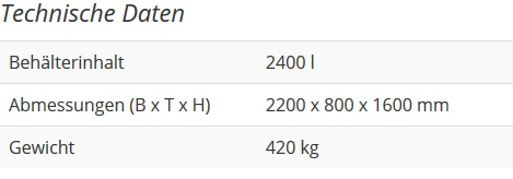 capacité 2400 ltr., poids environ 420 kg