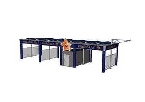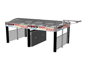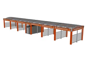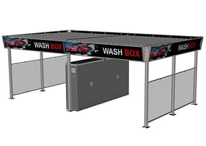 Le nouveau centre de lavage SKYLINE s’adapte à tous les sites. Grâce à l’évolutivité variable, il est possible de réaliser des centres de lavage en self-service de petite et de grande taille. La construction correspondante et fonctionnelle offre aux clients finaux une largeur de poste de lavage utile de 5 100 mm et une hauteur de passage de série de 3 200 mm (hauteur en option 3 550 mm possible avec supplément). La construction en acier peut être créée en tant que variante à toit plat ou que toit bombé translucide. Les cloisons des box peuvent être réalisées avec des bâches, des éléments de plaque en sandwich ou avec une vitre de verre de sécurité (ESG) dans un coloris gris fumée.