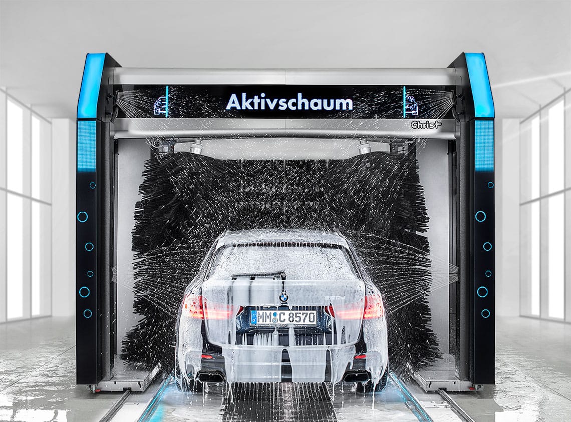 L’éclairage à DEL à l’intérieur du boîtier BLADE fournit des animations RVB modernes et attire ainsi l’attention du public. Des éléments de commande ou des affichages importants y sont également intégrés pendant le lavage de la voiture.