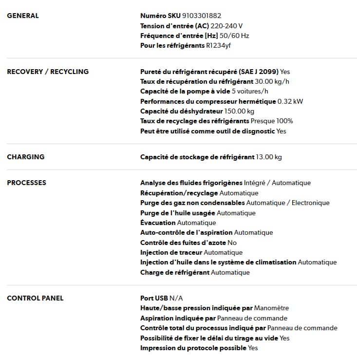 Poste d’entretien de climatisation pour R1234yf, 13 kg, Low Emission