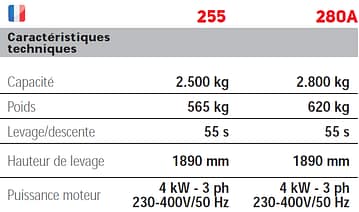 Elévateur électro-mécanique asymétrique, avec transmission par chaîne