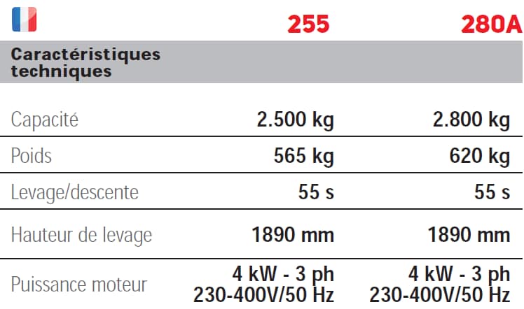 Elévateur électro-mécanique asymétrique, avec transmission par chaîne