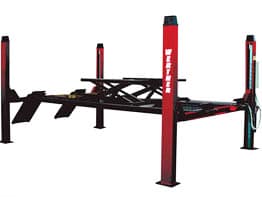 Pont élévateur hydraulique à 4 colonnes avec encastrements avant et plaques arrière pour géométrie et levage auxiliaire incorporé