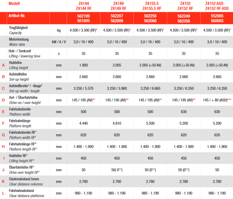 Z-Line 4 post lift type Z4152 RF-ASD