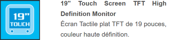 - Écran vidéo tactile HD 19″ à couleur;