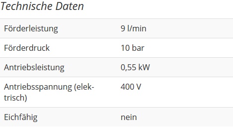 Débit jusqu’à 9 ltr./min en fonction de la viscosité