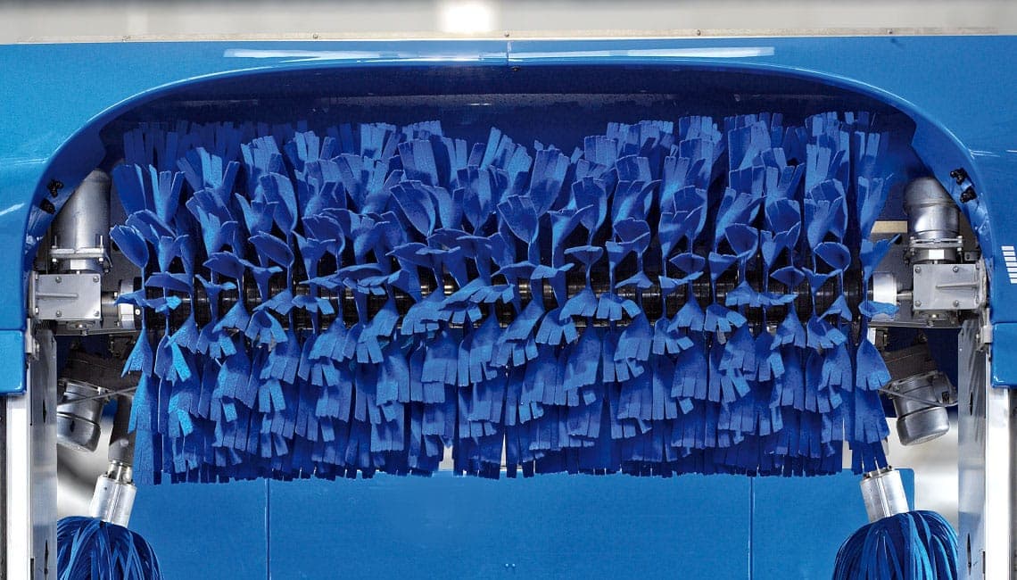 Des brosses de lustrage sont disponibles en option pour le portique de séchage. Elles permettent de donner un dernier lustrage après l’application de la cire de conservation et d’atteindre un effet de brillance particulièrement élevé sur le véhicule.